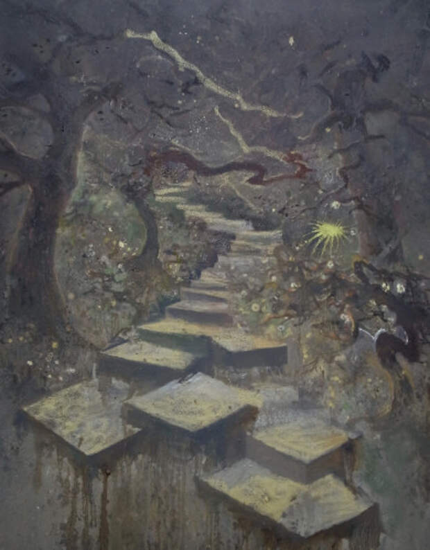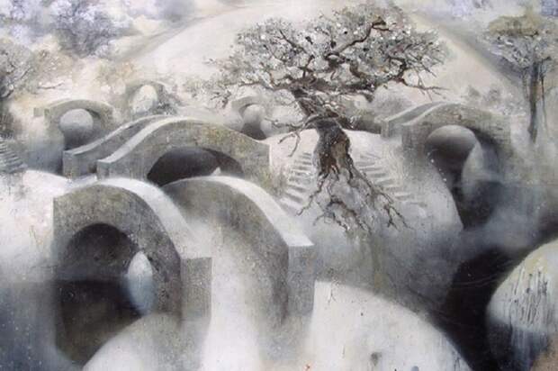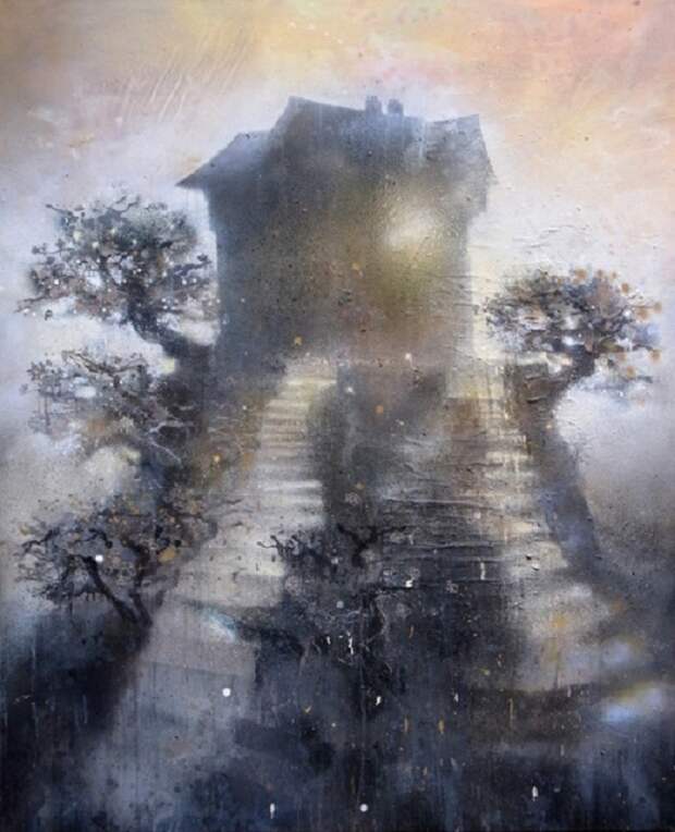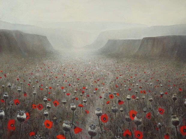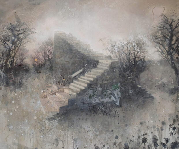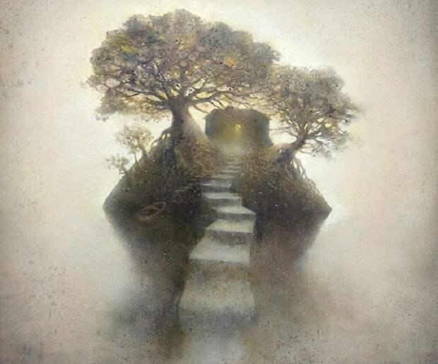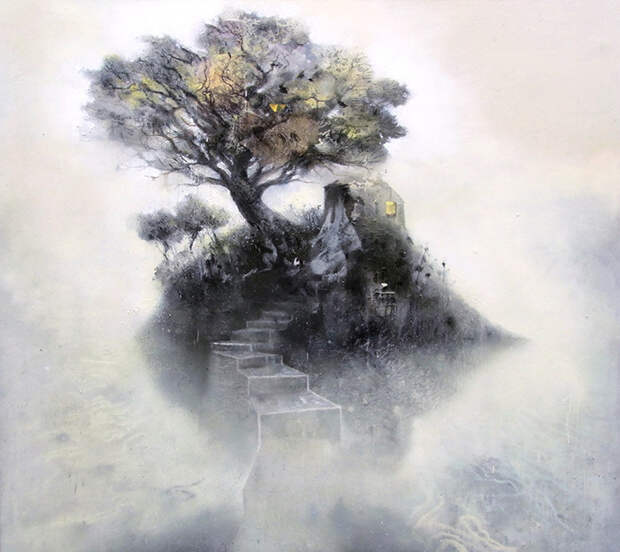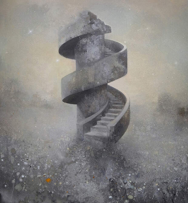 Атмосферные и мечтательные картины брошенных архитектурных сооружений и сцен первобытной природы немецкого художника Кевина Грея. Некоторые повторяющиеся мотивы в его картинах с островами, маками, мостами и лестницами часто освещаются неясным источником света. Небесный свет заливает тихим и рассеянным напряженным сиянием. Символы - мосты и лестницы это возможности перемещения на островах, где вы, вероятно, можно найти уединения и уединение.