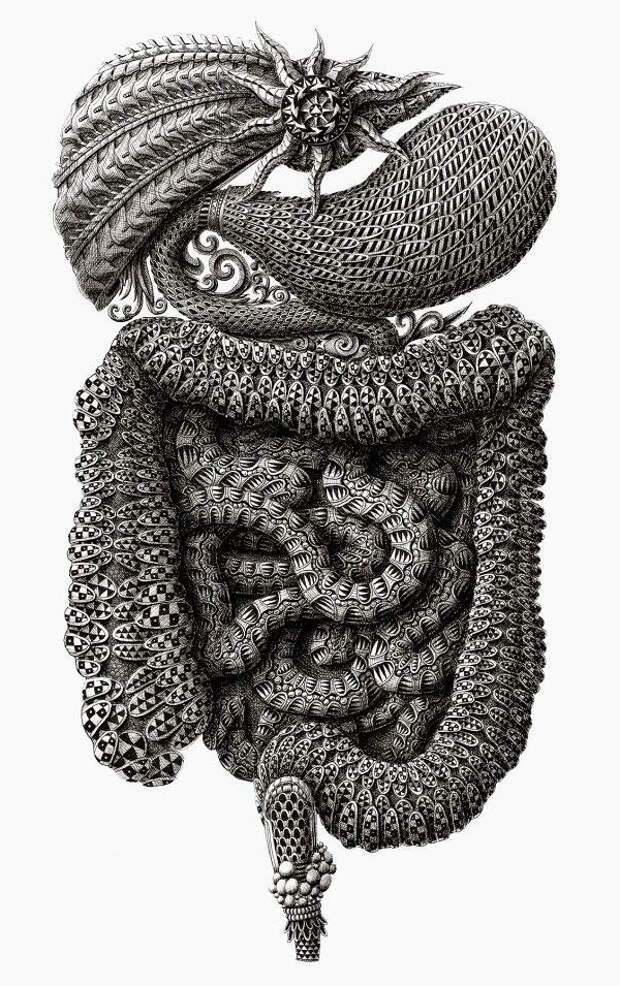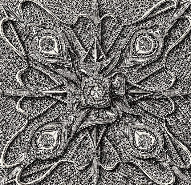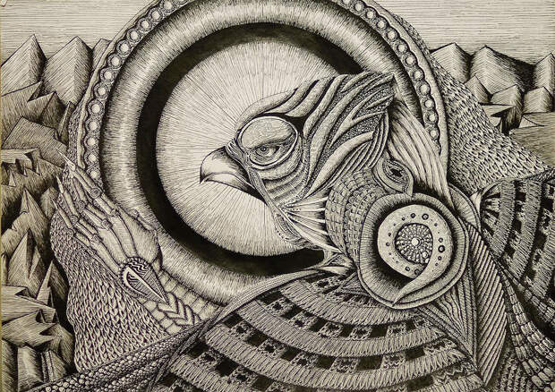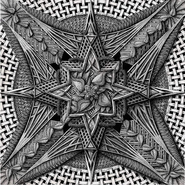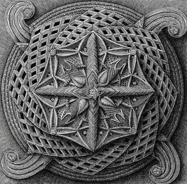 Латвийский художник и иллюстратор Алексей Конахин. Еще о рисунках. Они выполнены ручкой и тушью. Для такого творчества необходима не только задумка, еще надо внутренним зрением увидеть эти невероятные орнаменты, которые сплетаются в гармоничные насыщенные композиции. Детализация на высочайшем уровне. И необходимо терпение, много-много-много терпения. Я вот не понимаю, как он умудряется не размазать рисующей рукой только что нанесенную тушь.